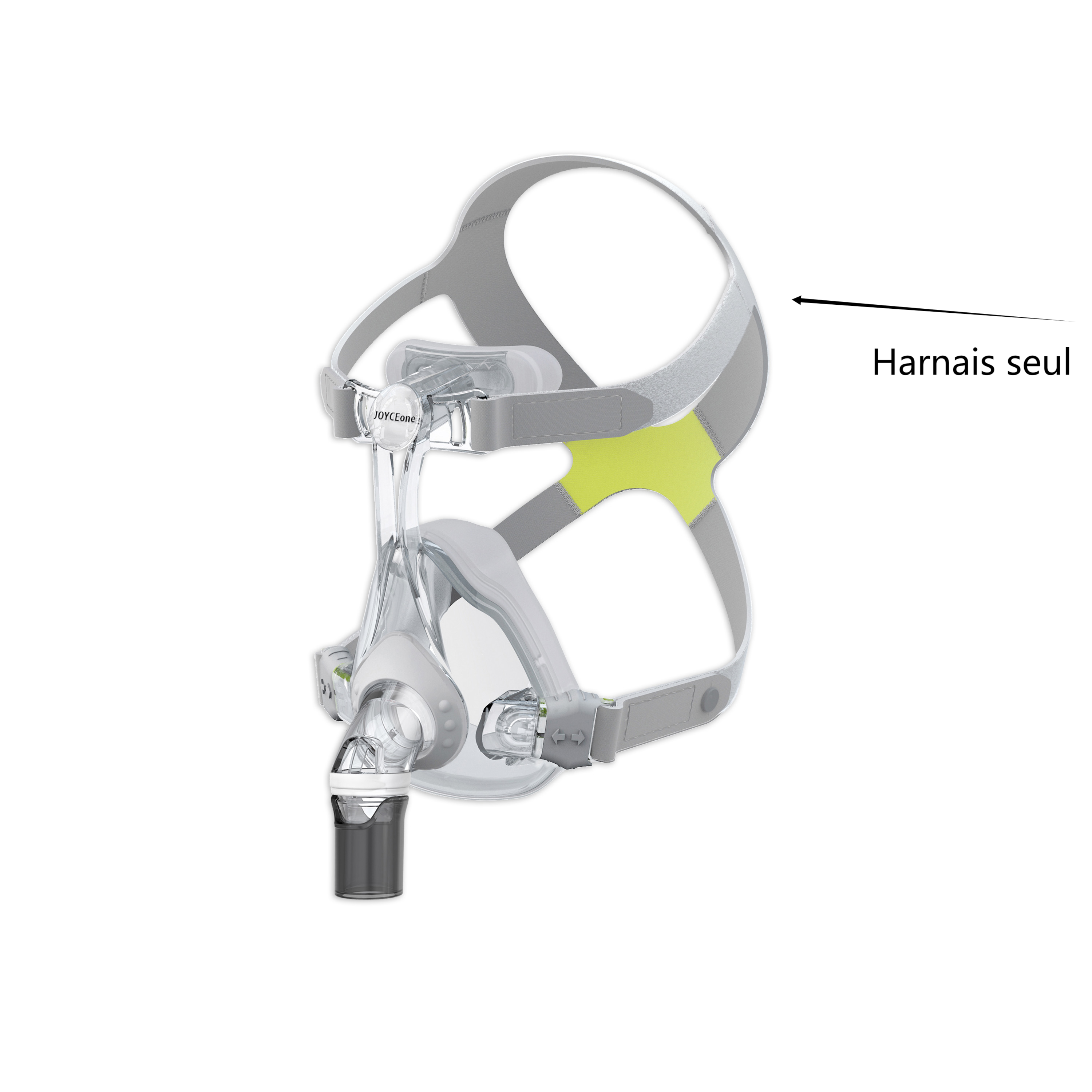 Minimisation des fuites : Conçu pour assurer un ajustement stable, le harnais JOYCEone minimise les fuites d'air, garantissant ainsi une thérapie efficace tout au long de la nuit.
