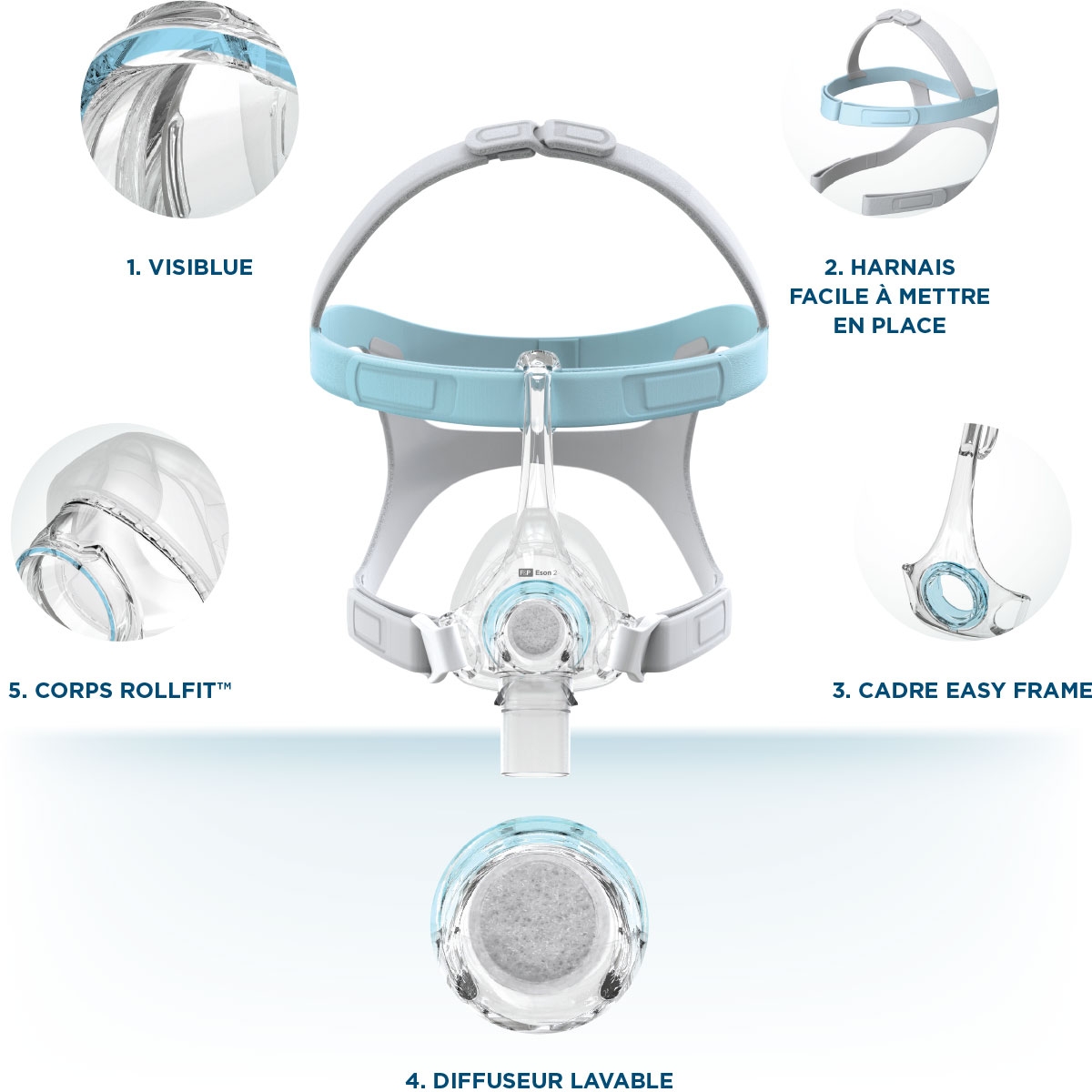 Design compatible, spécialement conçu pour le masque Eson™2, garantissant une interaction harmonieuse entre le masque et le harnais.