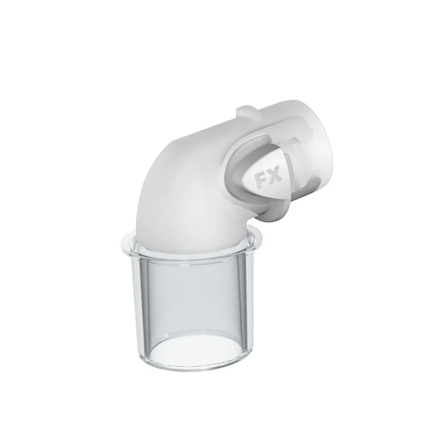 Ne laissez pas une pièce défectueuse perturber votre thérapie. avec Le coude ResMed Mirage™ FX, bénéficiez d’une connexion solide et d’avec Le coudepour un sommeil paisible.
