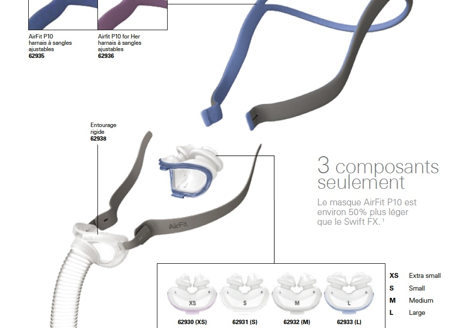 Masque Nairinaire ResMed AirFit P10 pour femme– Confort, légèreté et efficacité pour une thérapie optimisée